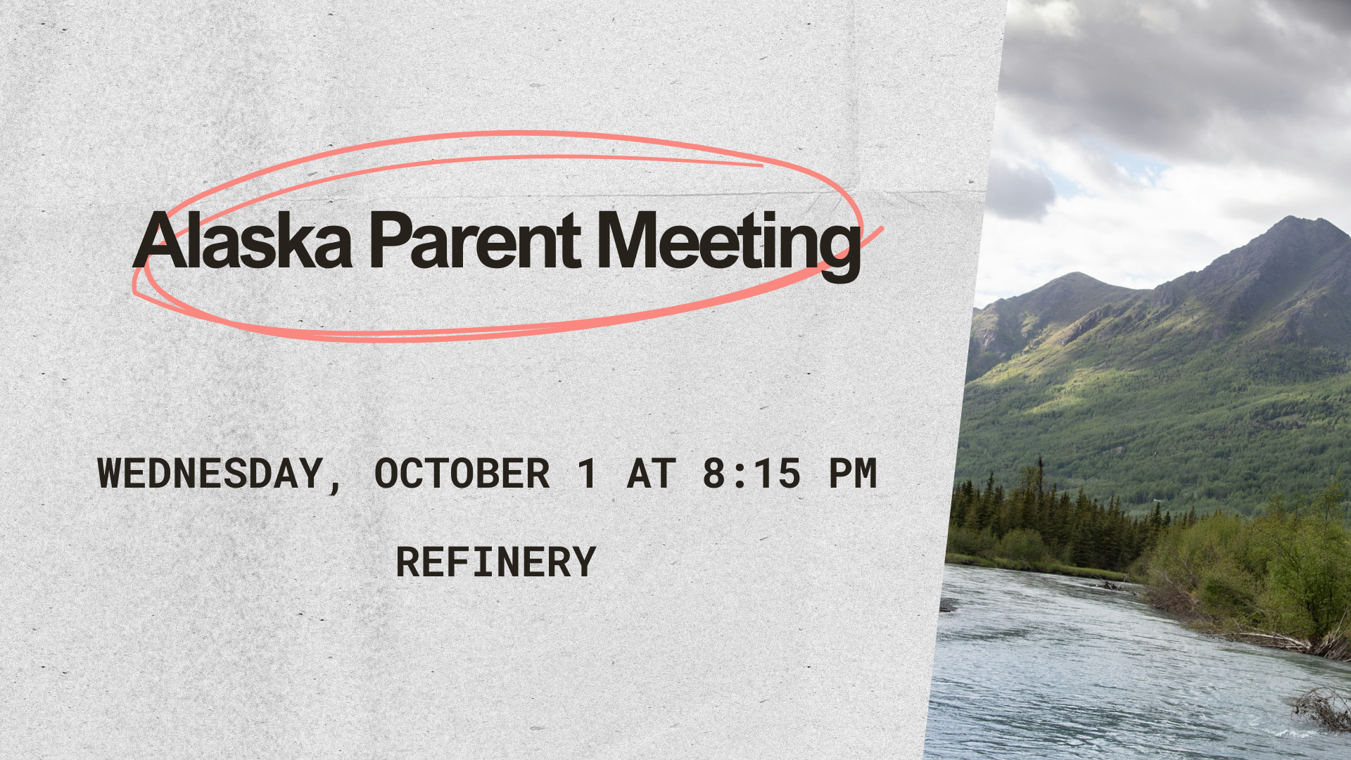 Pastor Nate would like to meet with every student who applied specifically for the Alaska STMT, and at least one of their parents, tomorrow night at 8:15 PM in the Refinery room. Please plan to be there and reach out if you have any questions!