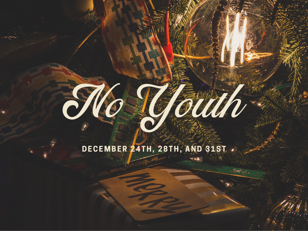We will not have youth on Wednesday, December 24th, and December 31st, and Sunday, December 28th.