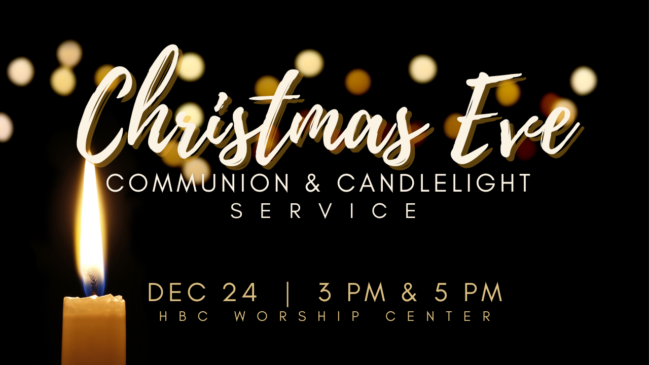 Join us for our Christmas Eve Candlelight Communion Service on December 24 at 3 PM or 5 PM. We look forward to worshipping together with you on this special day. Both services will be identical. There will be no Kids Ministry available as this is a family service.